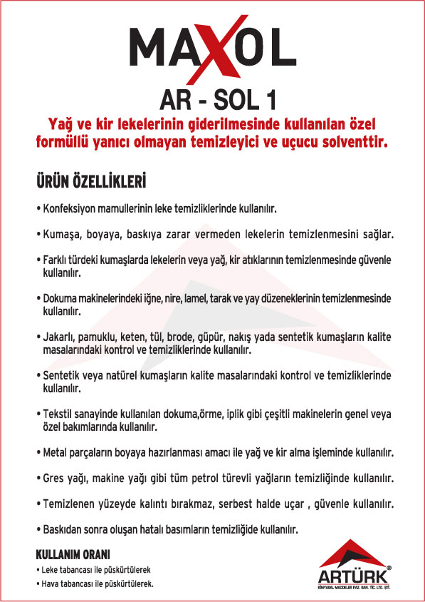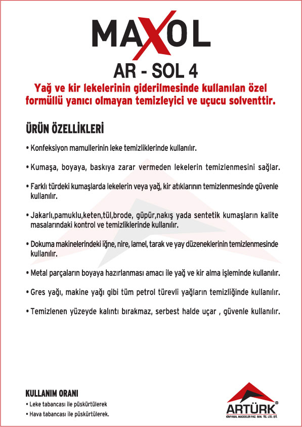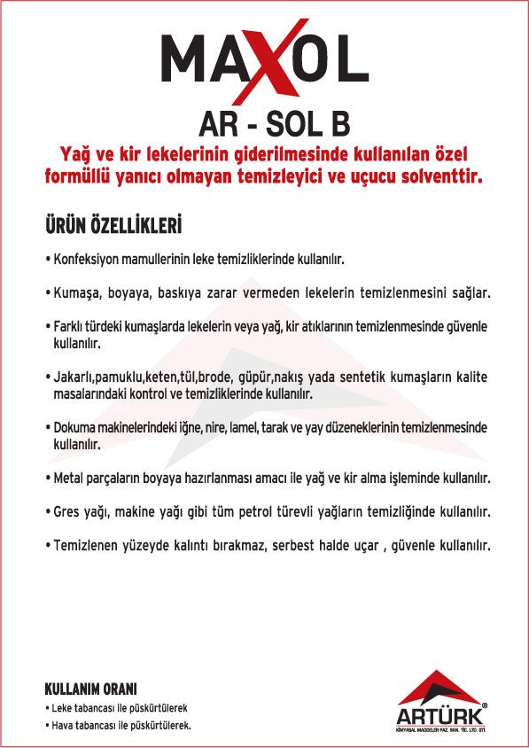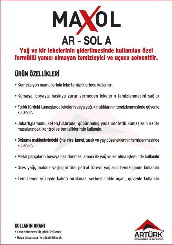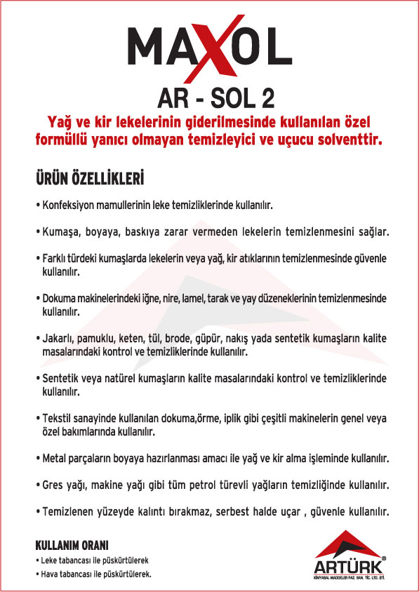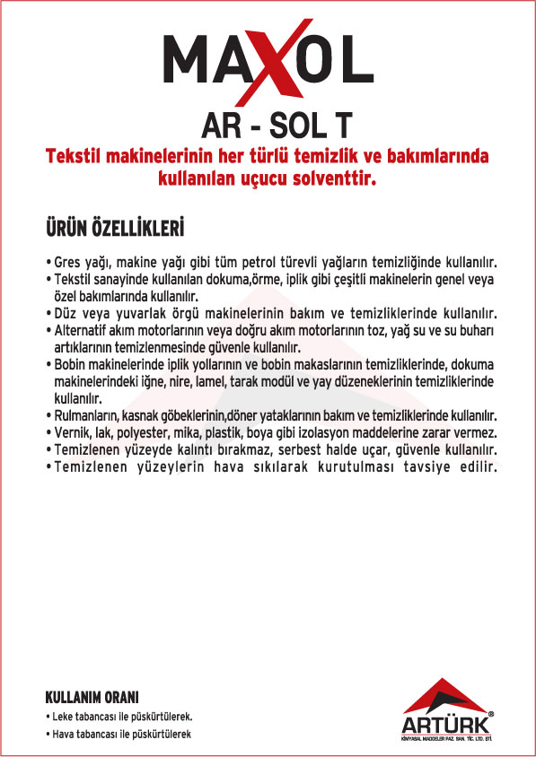 Tekstil Makineleri Temizleyici Solventler, Tekstil Leke Sökücü Solventler ve Metal Yüzey Temizleyici Solventler.
