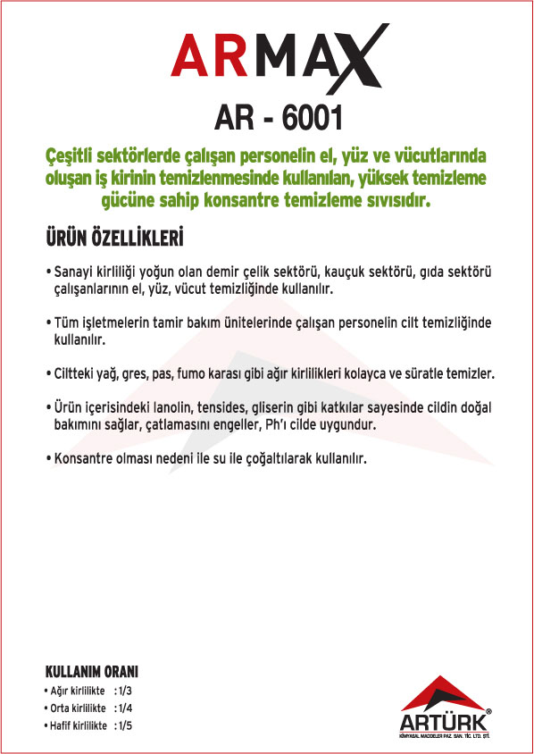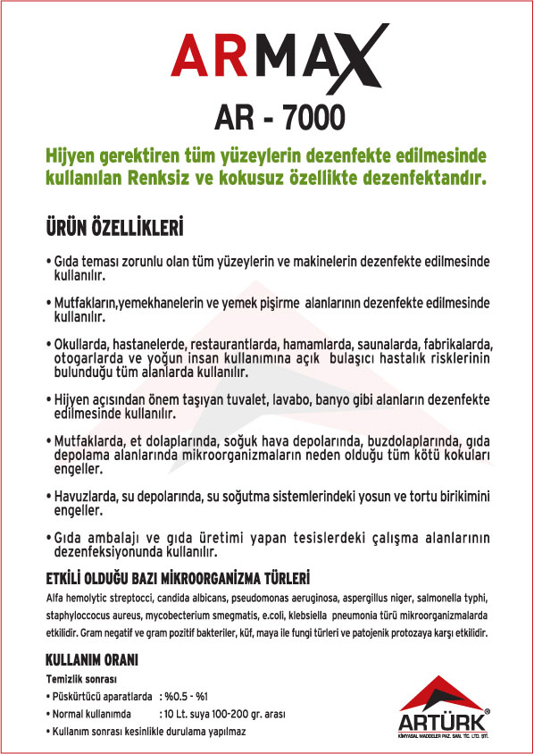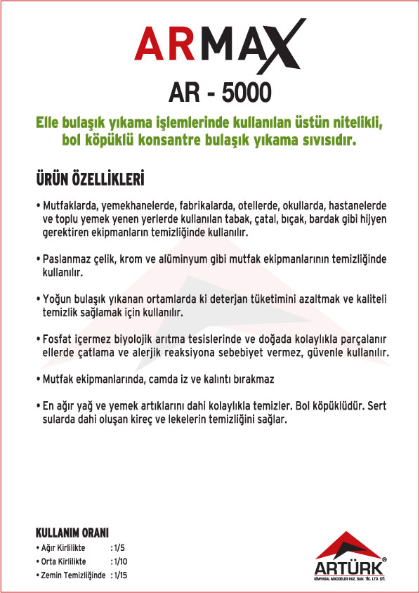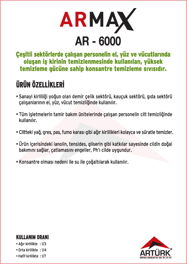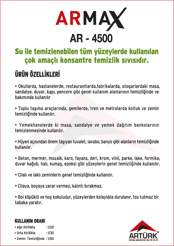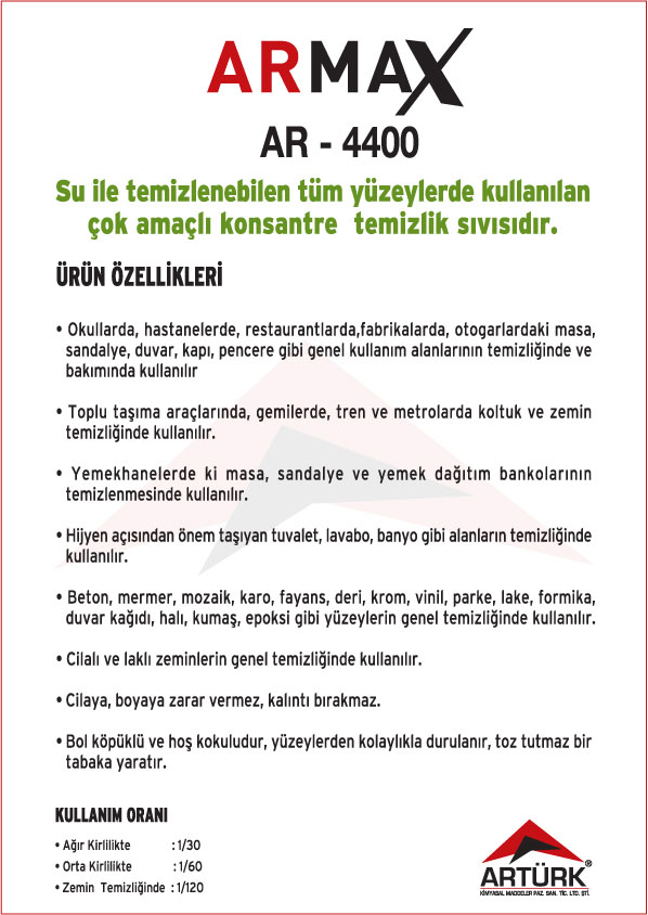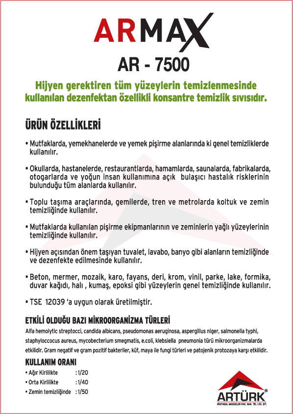 ARMAX Ürün Serisi ; Konsantre Dezenfektanlı Temizleyiciler, Konsantre Kokusuz Temizleyiciler, Konsantre Bulaşık Yıkama Sıvıları, Konsantre Genel Temizleyiciler,